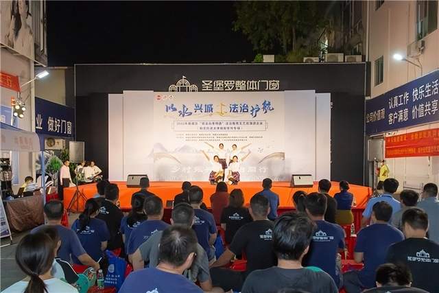 9月23日晚,“以水兴城 法治护航”2022年顺德区“崇法向善明德”法治教育文艺巡演活动(勒流专场)在乐竞官网举行,区司法局党组成员、副局长徐慧;区法援处副主任黄烈敏;勒流街道办事处副主任麦国治;区司法局勒流司法所所长萧泽开;广东圣堡罗家居集团董事张梅兰;广东圣堡罗家居集团人力行政总监韩佳共同出席本次活动。