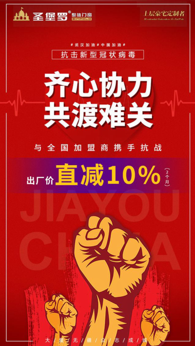 面对疫情,对全行业乃至举国上下而言都是一场灾难性的考验。关键时期,圣堡罗整体门窗和经销商以及广大客户紧密团结、抱团取暖,希望携手走出困境,共同迎接春暖花开。